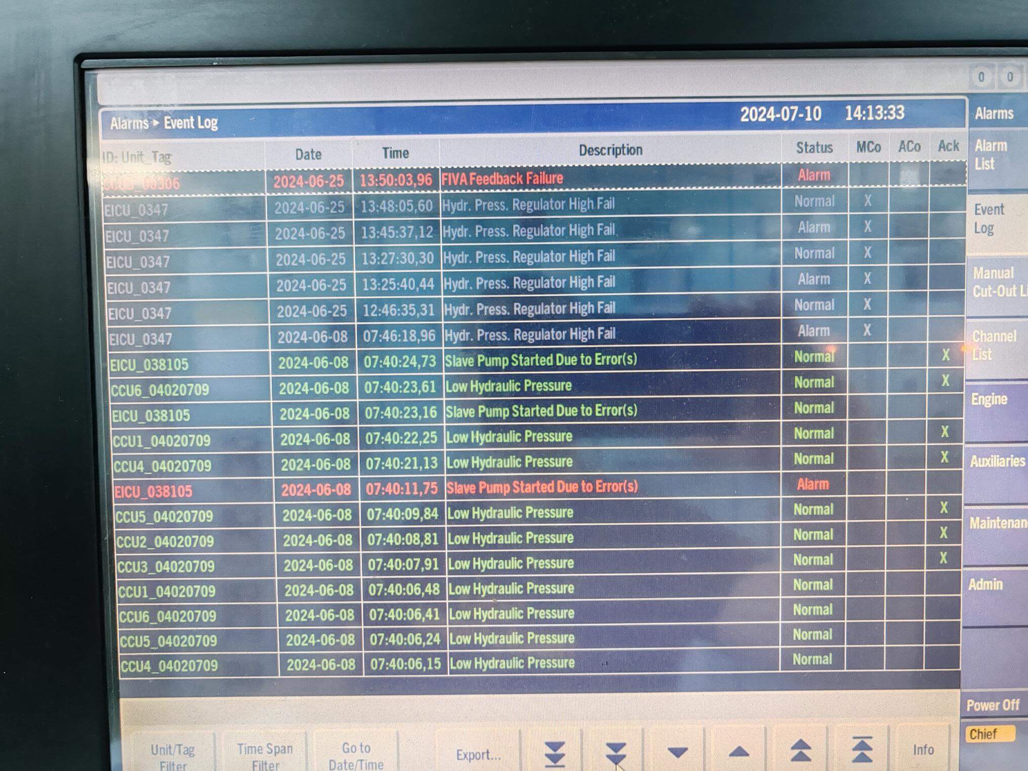 MAIN ENGINE HYDRAULIC SYSTEM OVERHAUL/INSPECTION